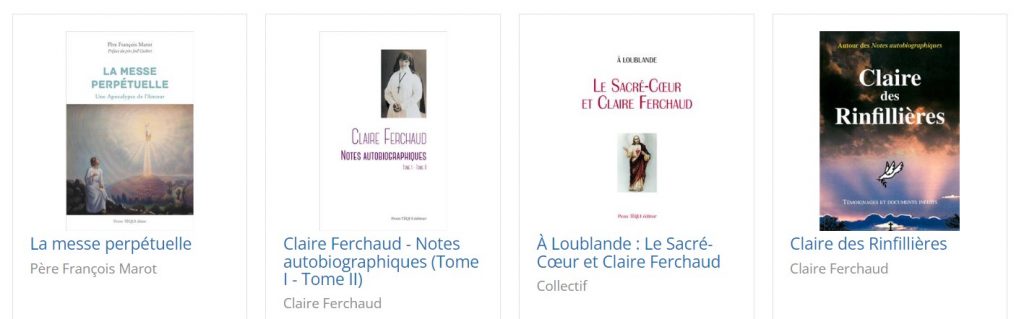 Les livres ci-dessus sont disponibles à la Maison du Sacré-Coeur à Loublande, ou sur Internet, sur le site de la librairie Téqui.